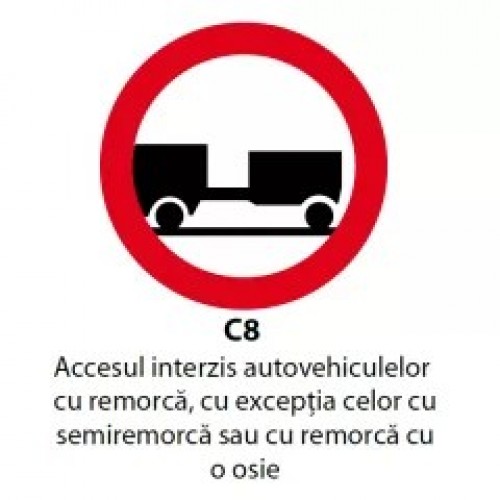 Indicatoare rutiere - Accesul interzis autovehiculelor cu remorcă, cu excepția celor cu semiremorcă sau cu remorcă cu o osie