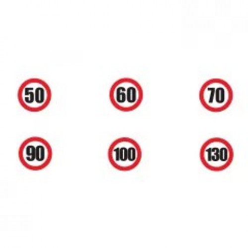 Etichete: Autocolante cu limita de viteza 50, 60, 70, 90, 100 si 130 KM/H, diametru 13 cm