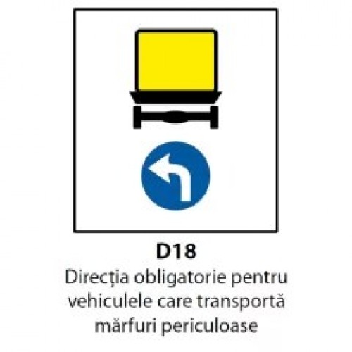Directia obligatorie pentru vehiculele care transporta marfuri periculoase (D18), Indicator rutier | Semn de circulatie