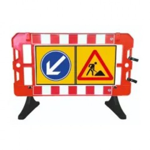Gard Cu Panou Semnalizare Lucrari Si Ocolire Stanga, 12,5 kg. Rosu