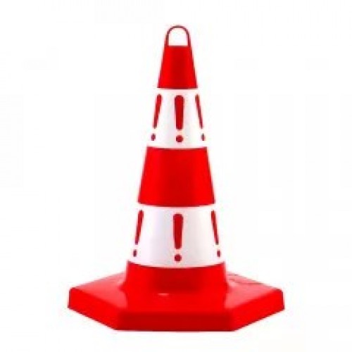 Con din plastic cu înălțimea de 50 cm. cu cârlig de transport. Acesta este folosit pentru delimitarea zonelor în lucru sau delimitarea unor zone de trafic.