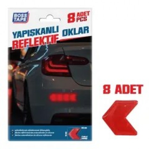 SET 8 Benzi reflectorizante tip sageata cu adeziv siliconic, ROSU, 4cm x 5cm
