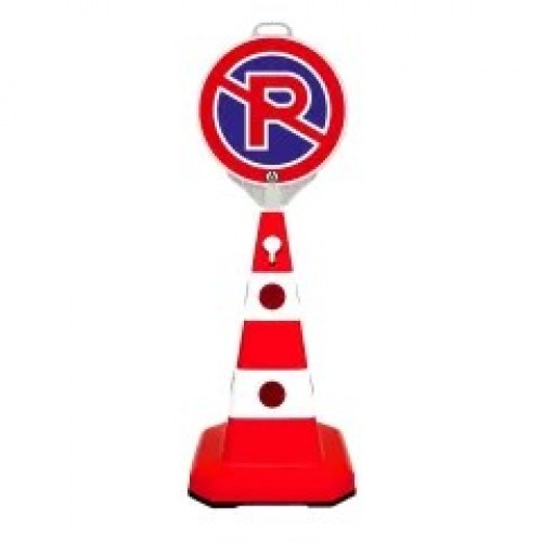 KIT: Con de trafic din plastic cu înălțimea de 60 cm + semn de parcare interzisă. Acesta este folosit pentru delimitarea parcărilor.
