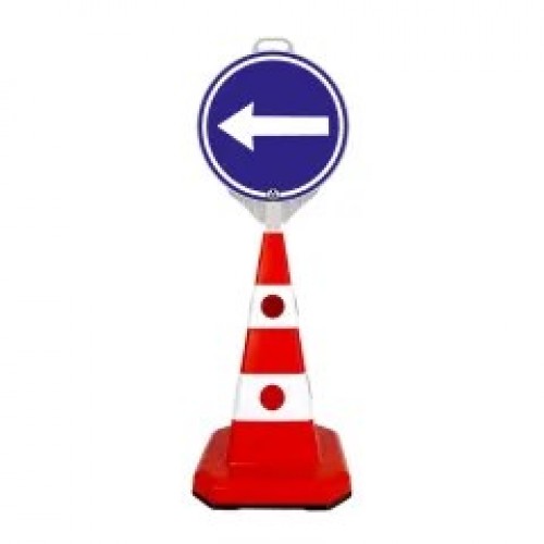 KIT: Con de trafic din plastic cu înălțimea de 60 cm + semn obligatoriu dreapta / stanga, fata-verso. Este foarte rezistent la temperaturi scăzute și nu se sparge.
