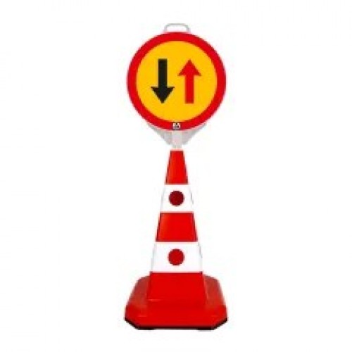 KIT: Con de trafic din plastic cu înălțimea de 60 cm + semn prioritate pentru circulatia din sens invers. Este foarte rezistent la temperaturi scăzute și nu se sparge.