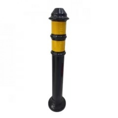 Stâlp ornamental din metal, cu banzi reflectorizante, înălțime 75cm, culoare negru, cu flanșă de prindere pe beton mascată.